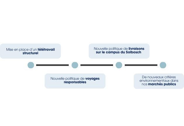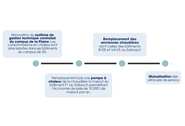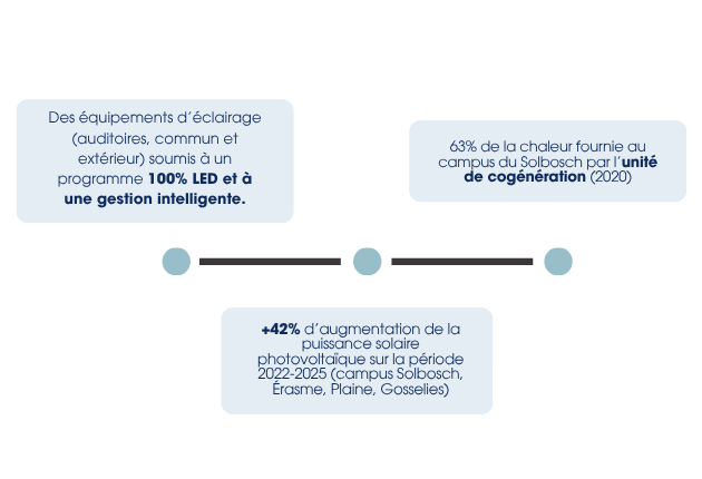 Les postes d’émissions majeurs que sont la mobilité, les achats et l’énergie des bâtiments restent déterminants et nécessitent une action continue. Dans ce cadre, le Plan Climat fournit à l’ULB une base opérationnelle permettant de poursuivre la dynamique engagée.