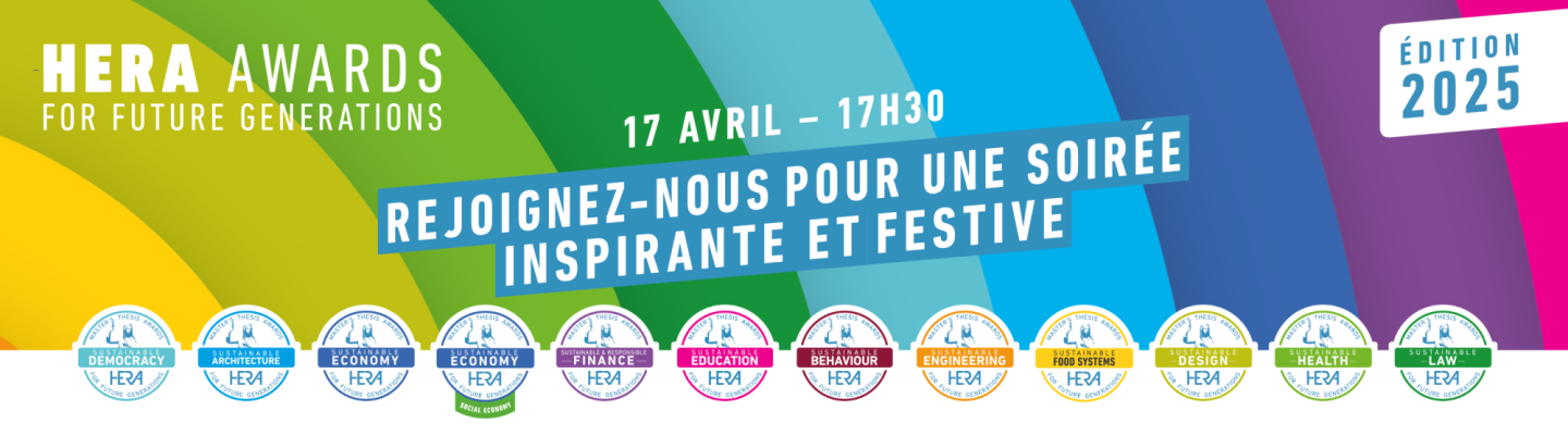 - HERA Awards 2025: 5 travaux de l’ULB primés15 avril 2025Pour cette nouvelle édition des HERA Awards, la Fondation pour les Générations Futures a décerné des prix d’excellence. Ces prix récompensent des mémoires de master et thèses de doctorat pour leur approche systémique à 360°, indispensable à un développement soutenable de notre société.