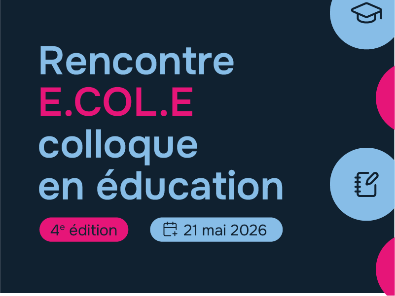 - Rencontre E.COL.E - Colloque en éducation3 octobre 2025SAVE THE DATE ! 21 mai 2026 4e édition sur la thématique «Les élèves à besoins spécifiques»