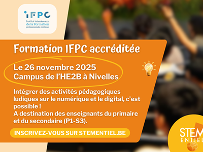 - Stementiel ! : vous forme à intégrer le numérique en classe via l'IFPC31 octobre 2025Enseignants du primaire ou du secondaire inférieur ? STEMentiel vous accompagne pour intégrer sciences et technologies en classe, à travers des activités clé-en-main alignées aux référentiels FMTTN et sciences.