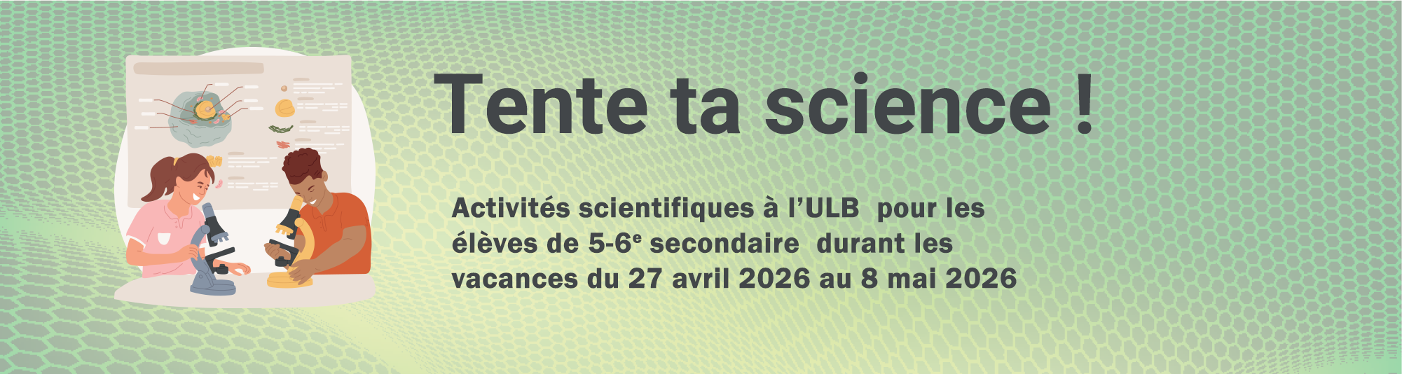 Découvre «Tente ta Science», un stage à l’ULB organisé par le Département Inforsciences: thématiques variées, ateliers et rencontres avec des chercheurs ainsi que des visites de labos de recherche.